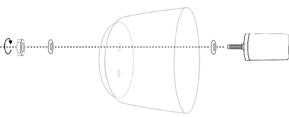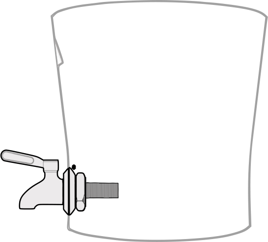 Por la parte interior del recipiente coloca en la rosca de la llave el otro empaque de silicón (4) y la otra rondana de metal (5). Enrosca la tuerca (6) con una mano mientras sostienes la llave con la otra mano.