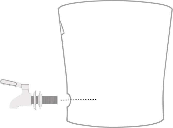 Toma la llave (1) y colócale en la rosca un rondana de metal (2) y un empaque de silicón (3). Introduce la rosca de la llave en el agujero del recipiente inferior.